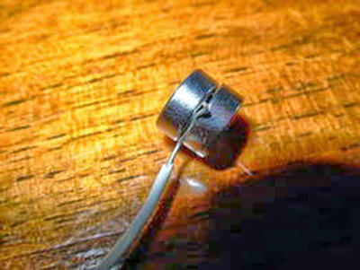 Và ở cuối hàng của pin bạn giữ lại một chút dây giữa hai viên nam châm.
